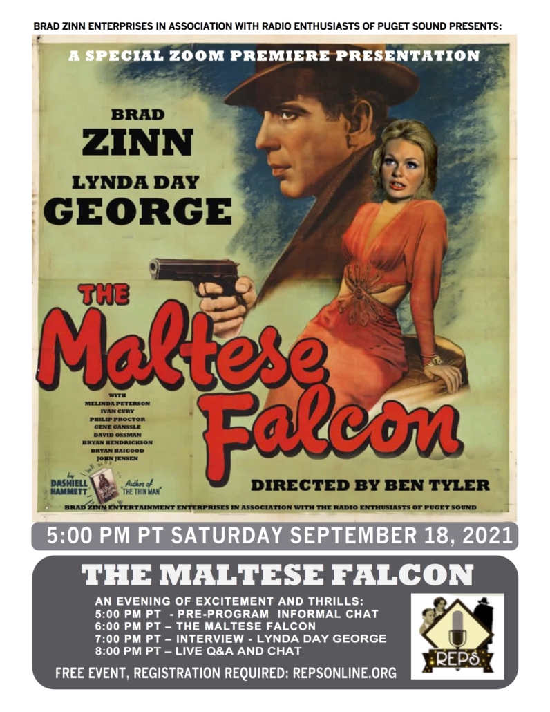 We are excited to be bringing you this Virtual Event, featuring the Premiere of The Maltese Falcon brought to you by Brad Zinn in collaboration with REPS – a star-studded cast, an interview with Lynda Day George and more!